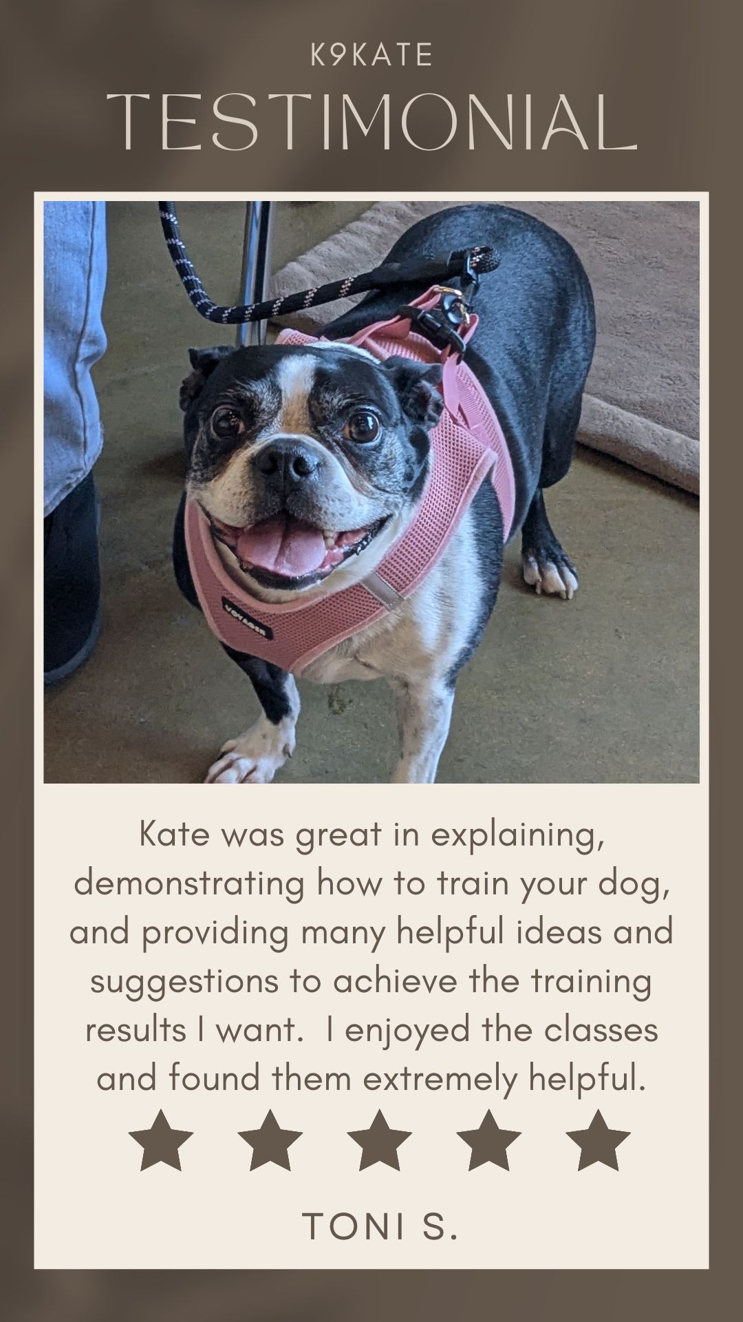 Created by Kate Gooch, dog trainer, founder of K9 Kate